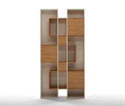 BILLY est un enchevêtrement de lignes, formant un labyrinthe simple et pourtant efficace fait d'éléments horizontaux laqués, ou recouverts de bois, et d'une structure en bois.